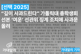 “깊이 사과드린다” 가톨릭대 총학생회 선본 ‘여운’ 선관위 징계 조치에 사과문 올려