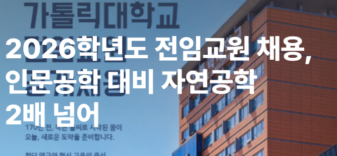2026학년도 전임교원 채용, 인문공학 대비 자연공학 2배 넘어