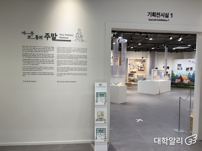 2층 기획전시실에서는 두 가지 주제의 전시를 진행하고 있습니다. 하나는 우리의 일상을 담은 전시인 ‘아주 보통의 주말’이라는 전시를, 하나는 한국의 선교 역사인 ‘조선 From. 한국’이라는 전시입니다.