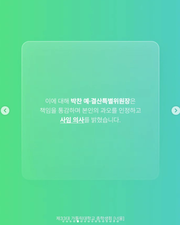 “박찬 예특위원장은 사임을 본인의 과오를 인정하고 사임 의사를 밝혔다”며 “금주 주말 동안 재감사 진행결과를 발표한다”고 박찬 위원장의 사임 소식을 간접적으로 전했다.