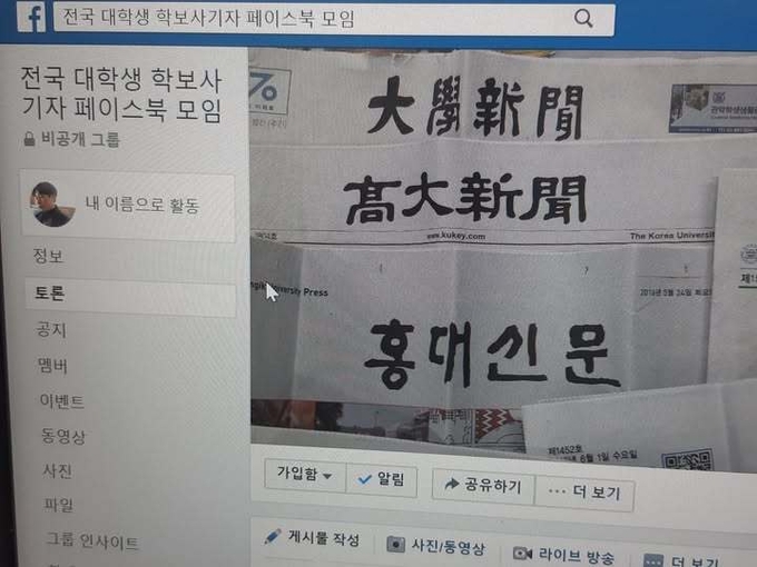 제가 만든 '전국 대학생 학보사기자 페이스북 모임' 페이스북 그룹은 여러 대학이 조직적으로 기획한 게 아닌 단순한 계기로 시작되었습니다. 과거 1980년대부터 2000년대 학번 현직들이 사용하였던 전국대학신문기자연합(이하 전대기련)의 인터넷신문이자 홈페이지인 Unews(유뉴스)는 제가 학보사 기자로 활동한 지 얼마 안 돼 사이트가 사라졌고, 대학생들의 유일한 활동처였던 싸이월드(클럽) 역시 그 수명이 오래 가지 못할 것이 눈에 보였습니다. 이미 2000년대부터 활동이 저조한 전대기련에서 유일하게 남은 행사였던 기자한마당의 마지막 집행부를 잠시 맡으면서 전국구 단위의 커뮤니티를 만들어 그들의 억울한 담론을 공론화시키겠다는 목적으로 오로지 혼자서 시작한 유일한 계기였기 때문입니다.
