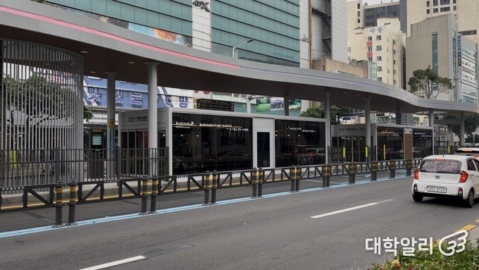 제주 서광로의 도로 한복판, 도로 중앙에 번듯하게 선 유리 정류장 안에는 온열 의자와 대형 전광판, 냉난방 시설이 들어서 있다. 비바람을 막아줄 밀폐형 공간 안에서 시민들은 버스 도착을 기다린다. 제주특별자치도(도지사 오영훈, 이하 제주도)가 추진 중인 ‘제주형 간선급행버스체계(BRT) 고급화 사업’의 상징인 ‘섬식정류장’이다.