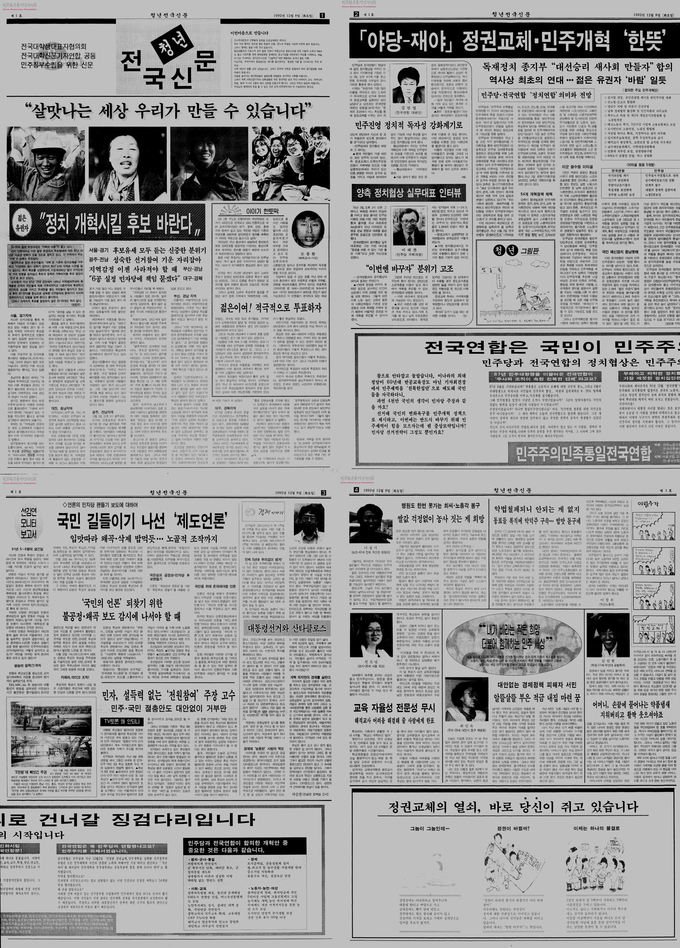 기존 언론의 의도적인 왜곡 보도가 많았던 대통령 선거기간 전대기련에서 발빠르게 전국신문을 만들었는데 그 때 지원해서 일주일에 한 두번 서울에 올라가 함께 했던 전국신문 특별팀 기자 동기들은 지금도 연락하며 만나는 소중한 인연이다.