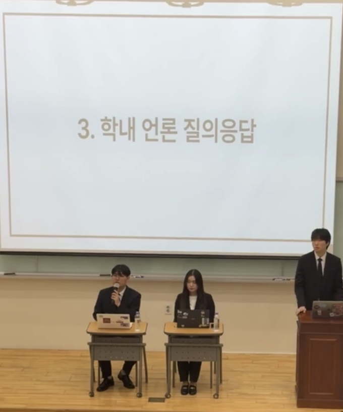 공청회는 학내 언론 질의, 서면 질의, 자유 질의 순으로 이어졌다.