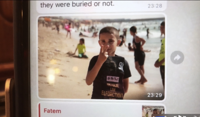 영화는 두 사람의 대화 장면을 중심으로, 전쟁 보도 뉴스 화면과 파템이 직접 촬영한 가자 지구의 모습을 교차해 보여준다.