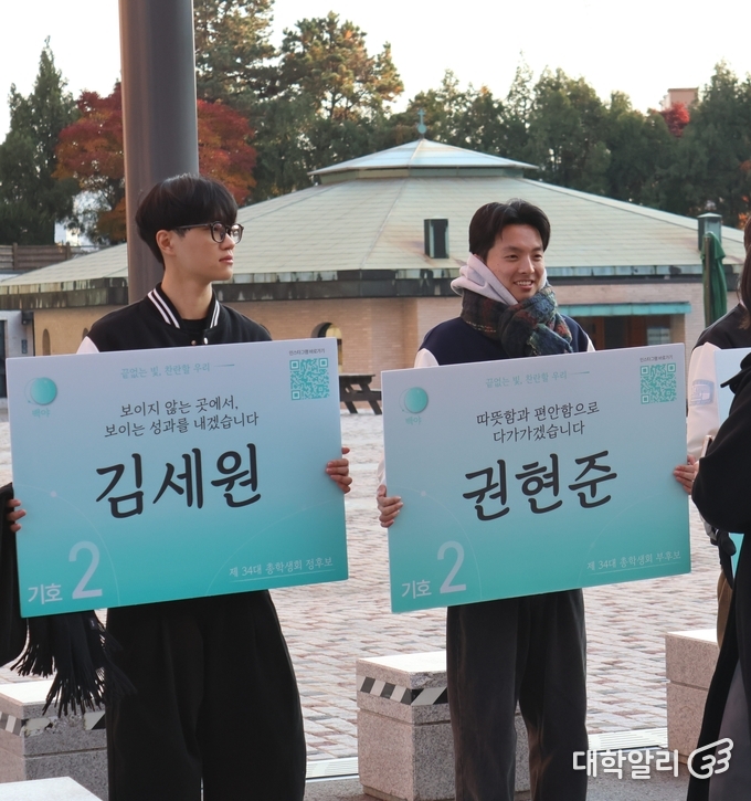 권현준 부후보: 코로나 시기를 지나면서 사라져 갔던 소속감과 결속력의 따뜻한 감정을 누구보다 갈망했던 기억이 있다. 모두가 떨어져 지내던 그 시절, 학생사회의 부재는 큰 아쉬움으로 남았고,‘함께’라는 가치를 다시 세우고 싶다는 마음이 생겼다.이후 총학생회의 여러 사업과 행사를 직접 경험하며, 가톨릭대학교 학우들이 하나가 되어서로의 청춘을 응원하고 빛내는 모습을 가까이에서 보게 됐다.