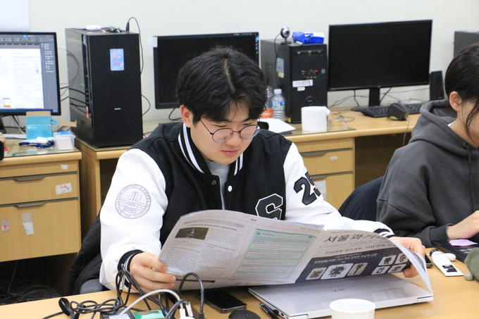 박: <The SeoulTech>은 2021년 창간된 서울과기대의 유일한 중앙 영자신문입니다. 지난해에는 연 4회, 총 8면으로 발행했습니다. 학내외 이슈를 비롯해 국제 이슈까지 폭넓게 다루고 있으며, 직접 영문으로 기사를 작성합니다. 신문 제작은 아이템·기획 회의·초고 작성·교열·조판 총 5단계를 거쳐 이뤄집니다. 교열 단계에서는 국제교류처 소속 원어민 교수님들의 피드백을 받고 있습니다.