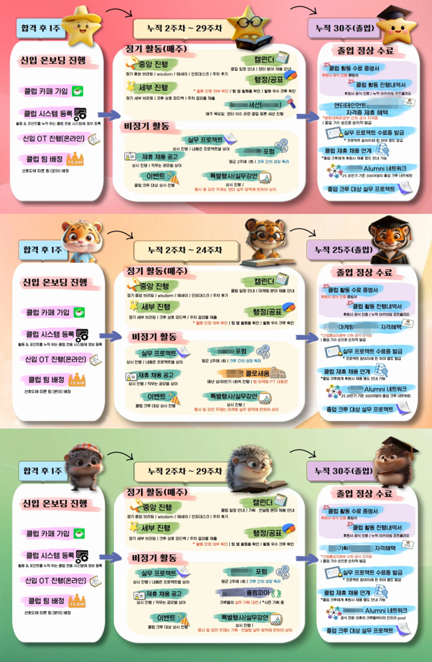 3개 연합동아리의 운영 방식을 파악하기 위해 각 연합동아리의 네이버 카페에서 확보한 진행규정과 전체 프로그램 내용에는 유달리 자주 등장하는 단어가 있었다. '후원사'. 일반적으로는 단체의 운영을 위해 물품·기부금 등을 지원하는 기업을 의미하지만, 3개 연합동아리에서 후원사의 영향력은 유별나게 컸다.