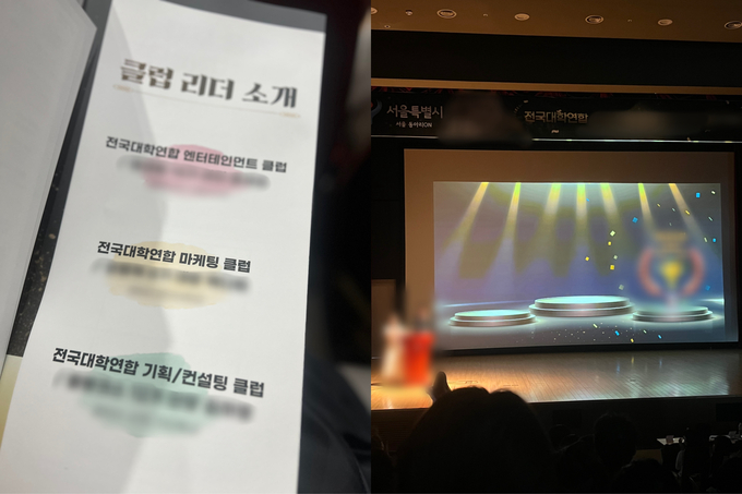 단순히 웹사이트 구조가 우연히 닮은 것이었을까. 한재연 씨는 지난해 8월 열린 동아리 연합 행사에서 이상함을 느꼈다고 전했다. 당시 행사장에는 김예원 씨와 최승희 씨가 속한 마케팅(A)과 엔터테인먼트(B)뿐만 아니라 기획(C)까지 전혀 다른 간판을 내건 3개의 연합동아리가 한자리에 모였다. 한 씨는 "원래는 A 연합동아리만의 고유 행사로 알고 있었는데, 주최 측에서 '이번에는 여러 동아리가 연합해 스케일을 키웠다'고 홍보했다"며 "현장에서 3개 연합동아리가 같은 시스템으로 운영되고 있다는 걸 알게됐다"고 설명했다.