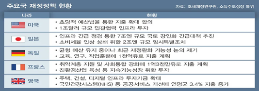 앞서 언급한 국민소득 항등식을 조금 더 구체적으로 나타낸다면, Y=c(Y-T)+C(독립소비)+I+G이고, 정부 지출에 관한 식으로 정리하는 과정을 통해 ΔY=(1/1-MPC) x ΔG의 관계식을 도출할 수 있다. 즉, 정부 지출의 증가는 1-한계소비성향(MPC)의 역수배만큼 커진 폭으로 국민 소득을 증가시킨다. 이를 ‘재정승수’라고 하고, 소득 중 어느 정도를 소비에 사용하는지를 나타내는 지표인 한계소비성향이 클 수록 더욱 커진다.