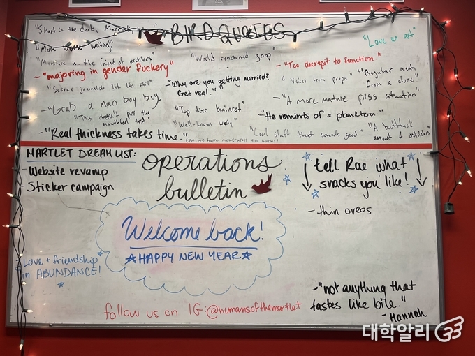 이든 : <The Martlet>은 1948년부터 빅토리아 대학교의 독립적인 뉴스 매체 역할을 이어오고 있어요. 여름에는 월간 발행을, 그 외에는 격주로 발행합니다. 또한 온라인 기사 및 SNS 게시물 업로드와 정기 뉴스레터 발송도 진행하죠.